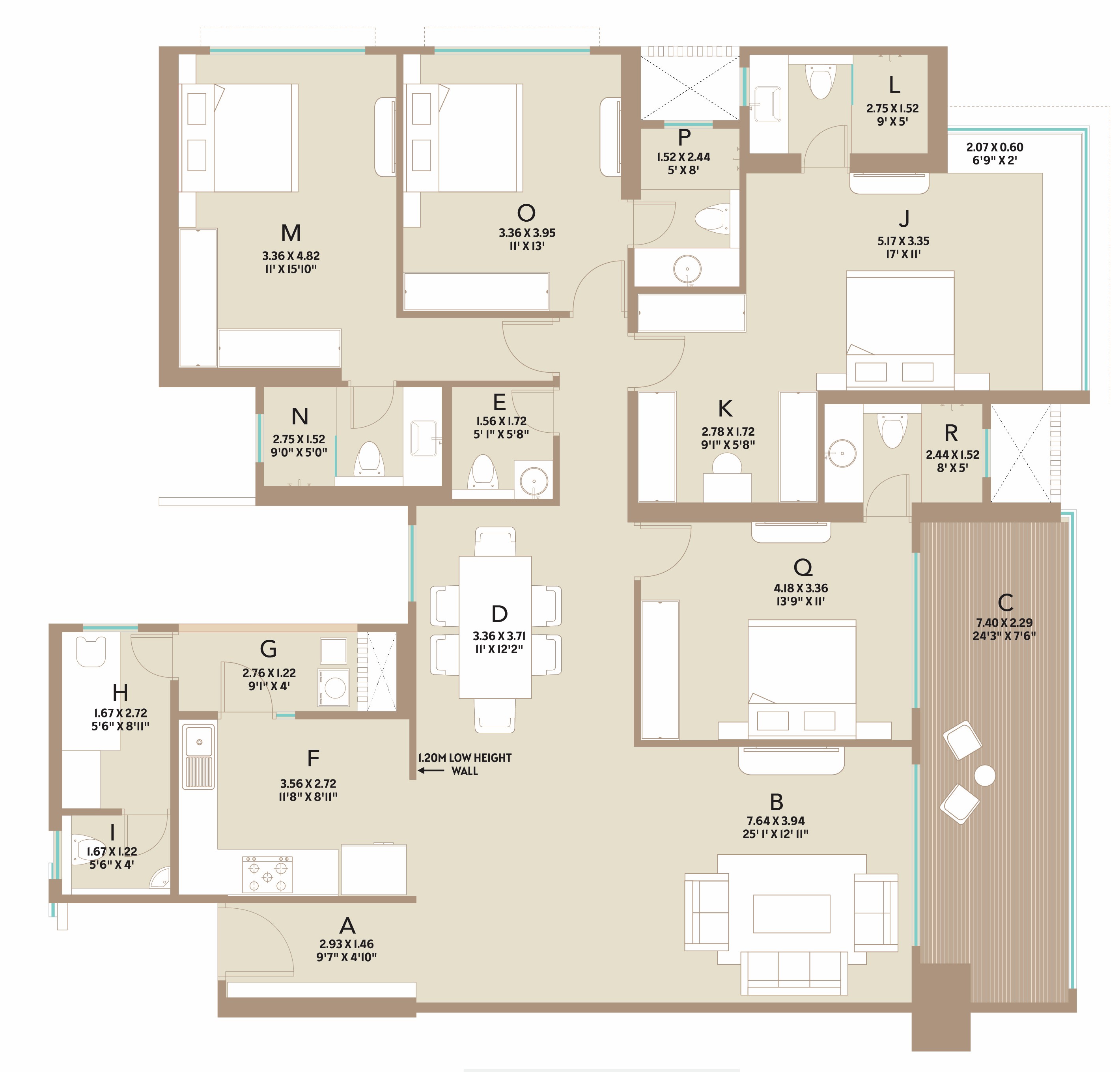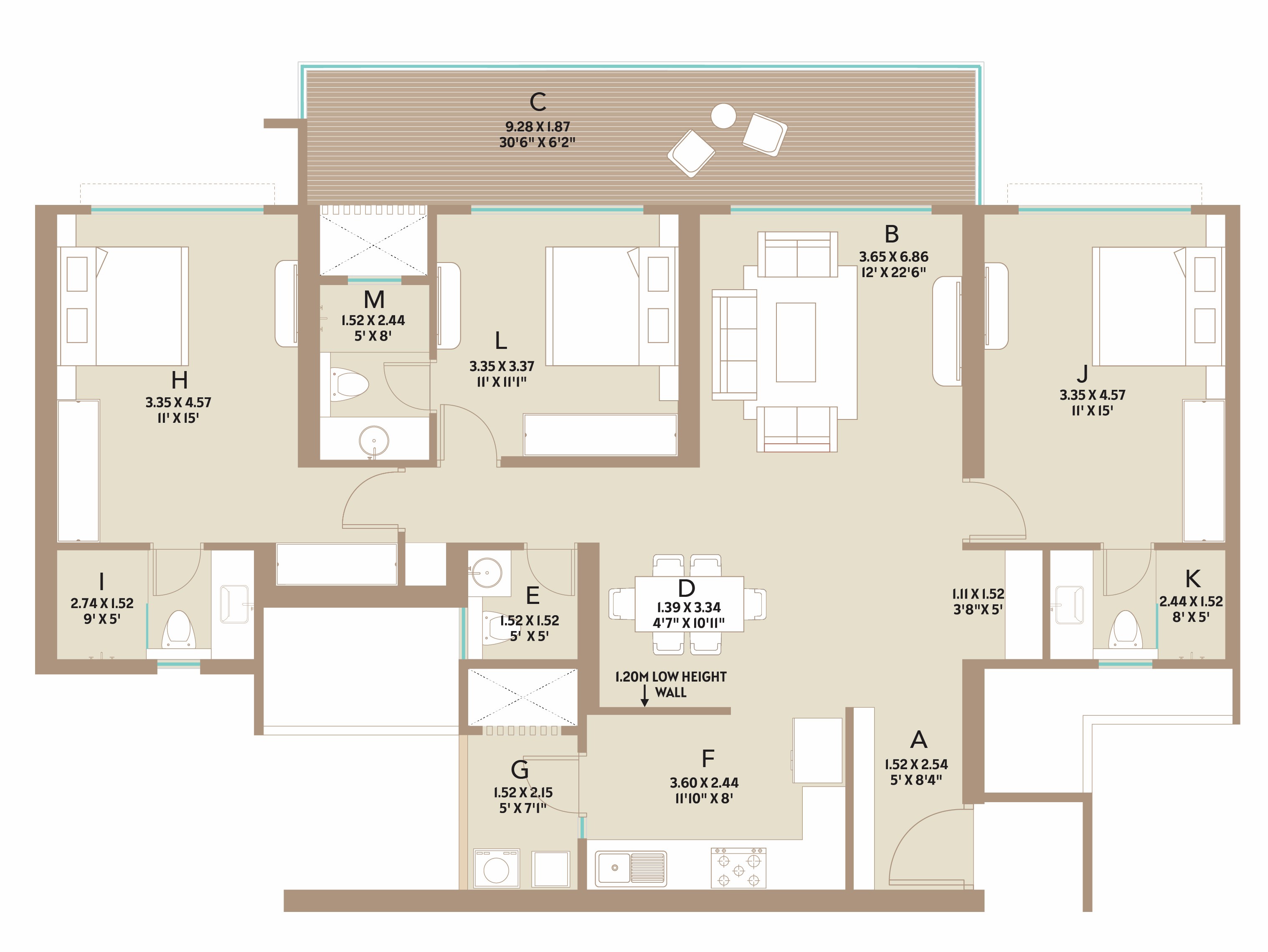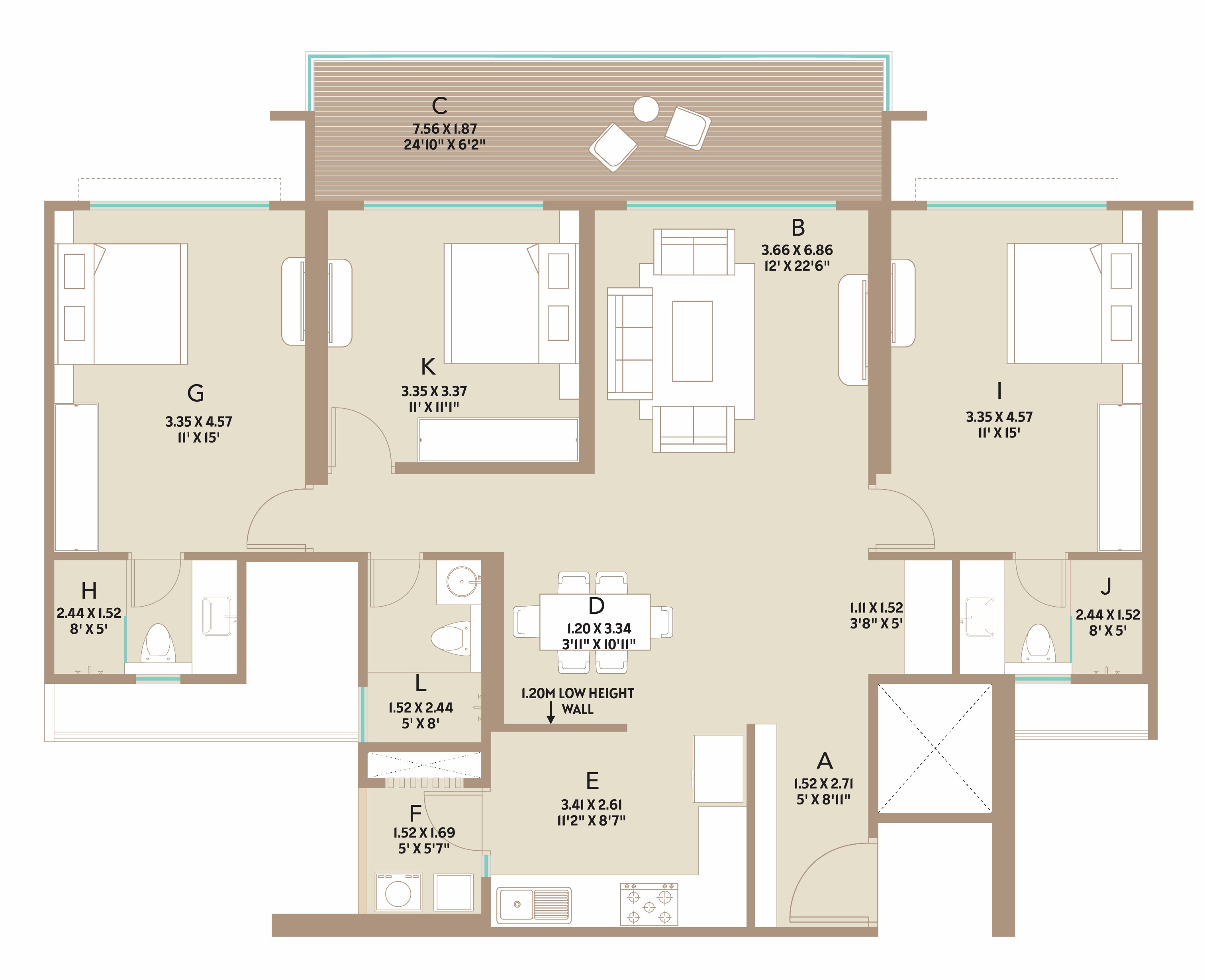 3 BHK (Canvas) 1330+ to 1450+ sq.ft